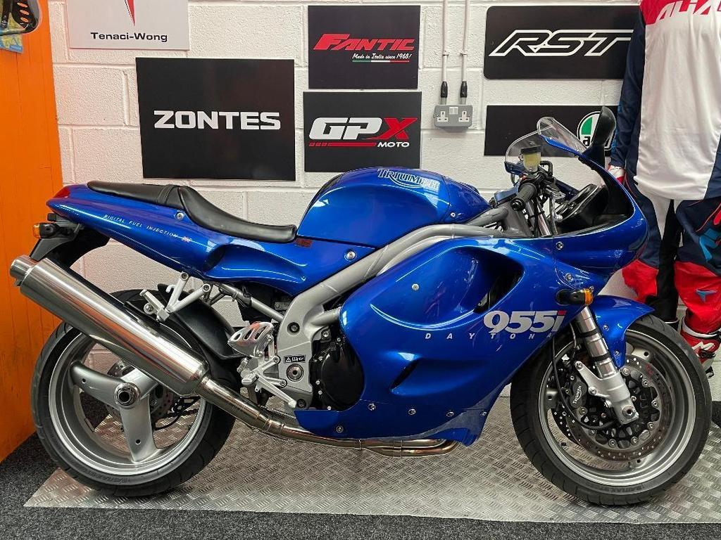 2001 ON A Y REGISTRATION TRIUMPH DAYTONA 955i. This bike is in time warp condition and is absolutely in stunning condition. The bike runs and rides perfectly. The bike is an excellent choice of sports tourer and this bike is ready to take you anywhere. Great handling and braking with plenty of power too make this a first class choice Certainly a lot of bike for the price tag. The bike will come with a full 12 months MOT and be properly serviced upon sale and will come with a 6 month warranty also. Px possible. Cards accepted. Buy in confidence from a trusted bike dealer please check out our reviews on Yell.com.FULL UK NATIONWIDE DELIVERY AVAILABLE. ALL VEIWINGS ARE BY APPOINTMENT. MOT testing station RST Clothing AXOR & AIROH HELMETS & much more. For any further information on this bike please contact us today thanks for looking. FINANCE AVAILABLE PLEASE SCAN THE QR CODE IN THE LAST PICTURE